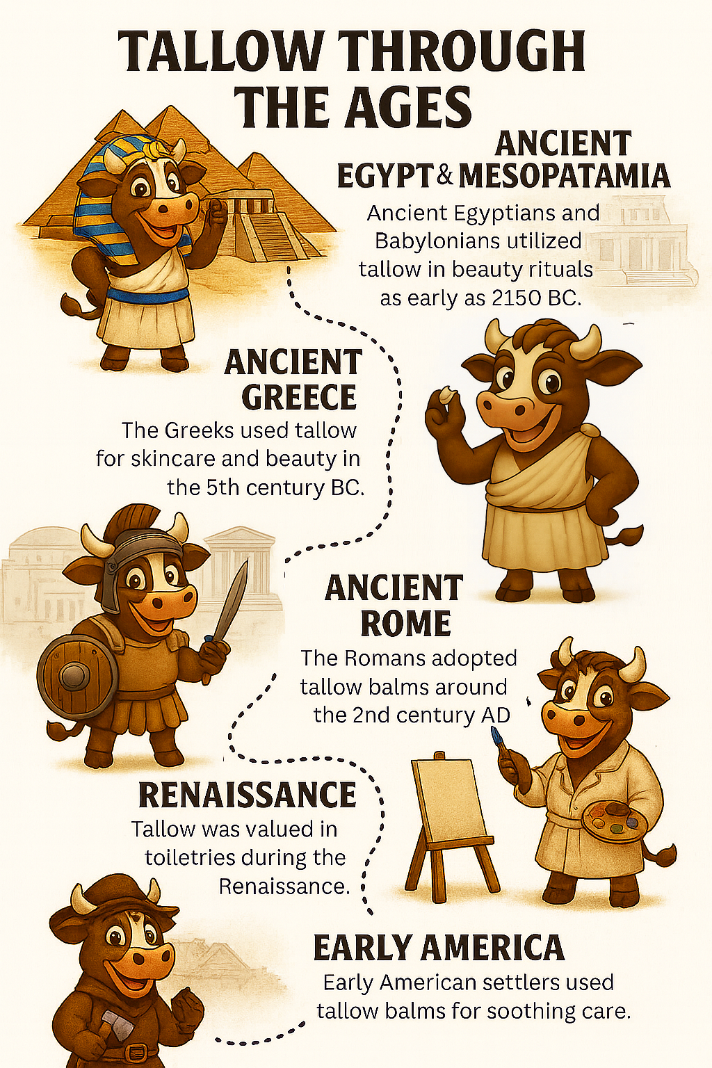 From Ancient Egypt to Early America, cultures across history have trusted tallow for its skin-nourishing power. This isn’t a new trend — it’s skincare that’s stood the test of time.
